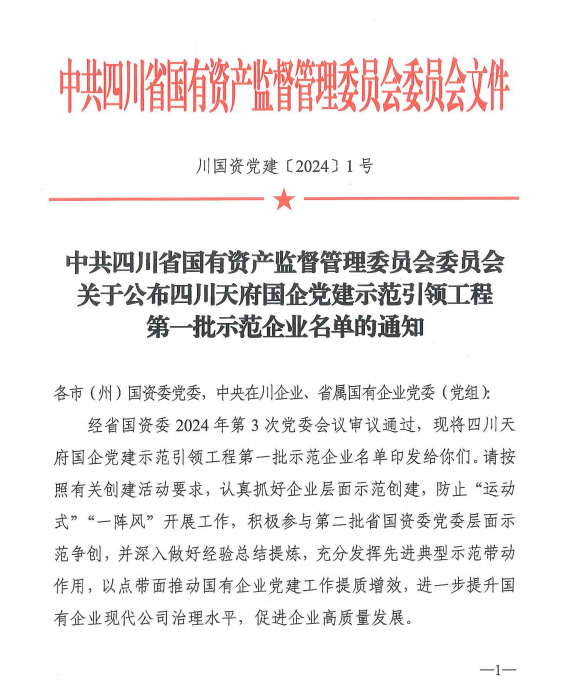2月5日,中共四川省國有資產(chǎn)監(jiān)督管理委員會委員會發(fā)布《關(guān)于公布四川天府國企黨建示范引領(lǐng)工程第一批示范企業(yè)名單的通知》,天原集團(tuán)從全省200多家申報企業(yè)中脫穎而出,成功入選四川天府國企黨建示范引領(lǐng)工程第一批示范企業(yè),是宜賓市唯一獲“黨建品牌建設(shè)示范企業(yè)”的單位,在全省市(州)企業(yè)中僅2家。