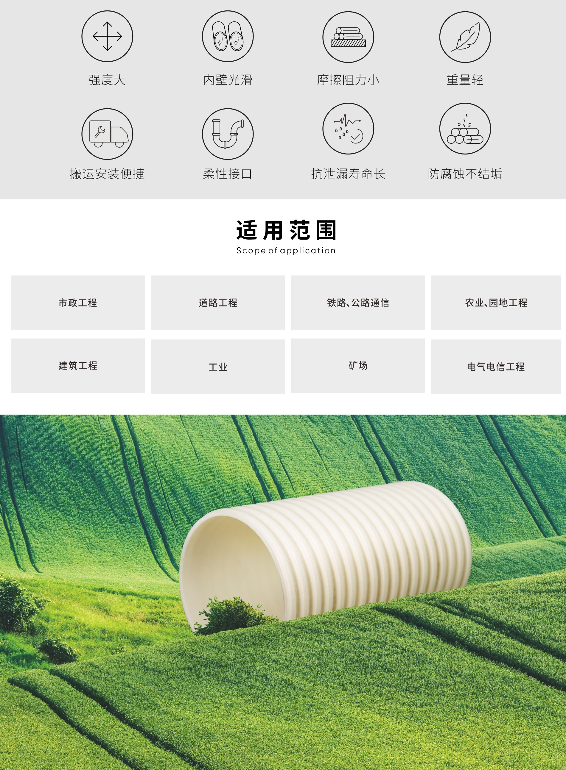 “天原”牌PVC-U雙壁波紋管以優(yōu)質(zhì)的PVC為原材料,利用擠出模塊壓制成型的雙壁波紋管,管壁截面和擴口為雙層結(jié)構(gòu),內(nèi)壁光滑平整,外壁等距排列,具有梯形中空結(jié)構(gòu)。