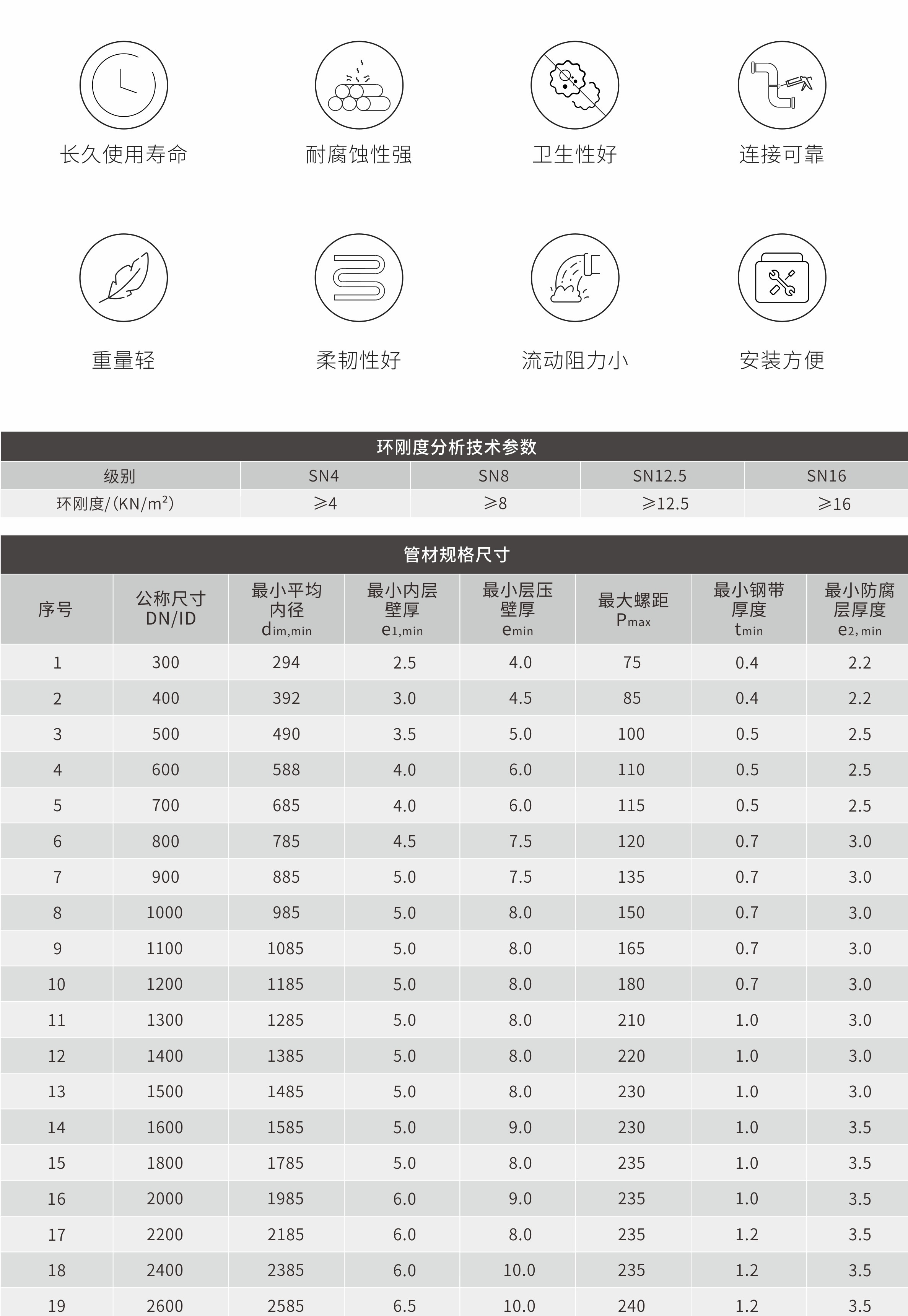 雙層增強(qiáng)改性聚烯烴(ORPO-M)鋼塑復(fù)合管是通過(guò)自有接技增容技術(shù)和偶聯(lián)活化技術(shù)、對(duì)聚烯經(jīng)增韌樸強(qiáng)為基礎(chǔ),并以獨(dú)特的成型工藝裝置將鋼帶進(jìn)行過(guò)塑以連續(xù)維繞成型的一種新型雙層增強(qiáng)管材。管材環(huán)剛度高、柔性好,抗沖擊能力強(qiáng),將塑料管和鋼管的優(yōu)良性能結(jié)合起來(lái),適用于市政埋地排水、無(wú)樂(lè)排水和建筑室外排水用等領(lǐng)域。