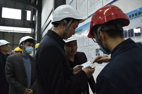 張副市長(zhǎng)一行深入天億新材料生產(chǎn)車間,詳細(xì)了解生產(chǎn)經(jīng)營(yíng)和安全清單責(zé)任制落實(shí)、安全設(shè)施設(shè)備以及標(biāo)準(zhǔn)化班組創(chuàng)建情況。