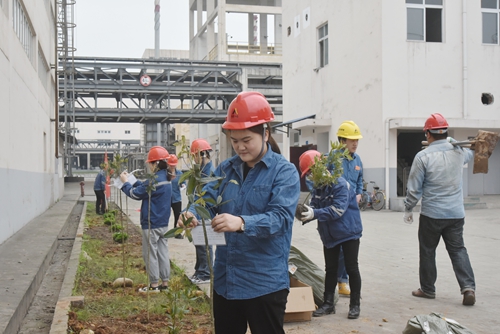 ▲天億新材料團(tuán)支部青年志愿者美化周邊環(huán)境,清理雜草