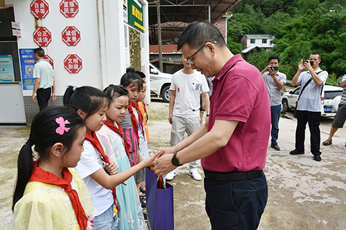 羅書記一行首先慰問了紅巖村7名小學(xué)生和2名代課老師,給他們送去了學(xué)習(xí)用品和慰問金。