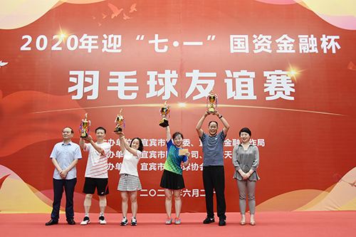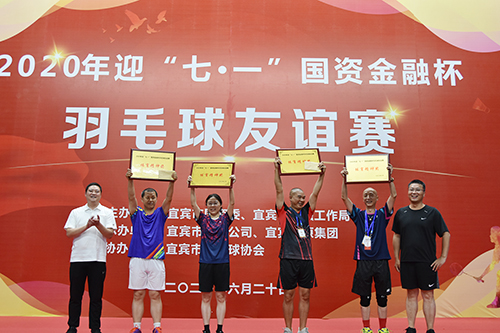 市國資委主任鄧文廣發(fā)表講話,他說,本次羽毛球友誼賽,是國資系統(tǒng)和金融系統(tǒng)全體職工精神面貌的一次集中展示,也是我們?yōu)榧涌旖ǔ扇〗?jīng)濟(jì)副中心征程中的一個精彩剪影。2019年,全市國有企業(yè)資產(chǎn)總額全省排名第三,營業(yè)收入等五項(xiàng)主要經(jīng)濟(jì)指標(biāo)全省排名第二,并先后兩次在省上做國資國企改革交流。2020年,國有企業(yè)要繼續(xù)發(fā)揮好國資南向開放橋頭堡作用,為完成全年經(jīng)濟(jì)社會發(fā)展目標(biāo),促進(jìn)宜賓加快建成全省經(jīng)濟(jì)副中心做出最積極的貢獻(xiàn)。