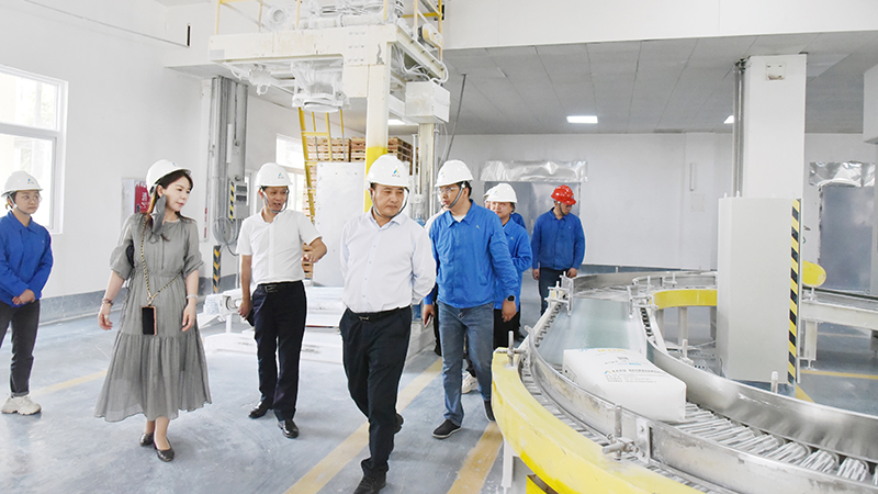 一行人先后實地參觀了天原集團企業(yè)文化展廳,海豐和泰生產指揮中心(DCS)、智能倉儲系統(tǒng)、質量檢測中心和包裝車間等核心區(qū)域。雙方圍繞產品應用、工藝技術指標及生產制造等方面展開交流。
